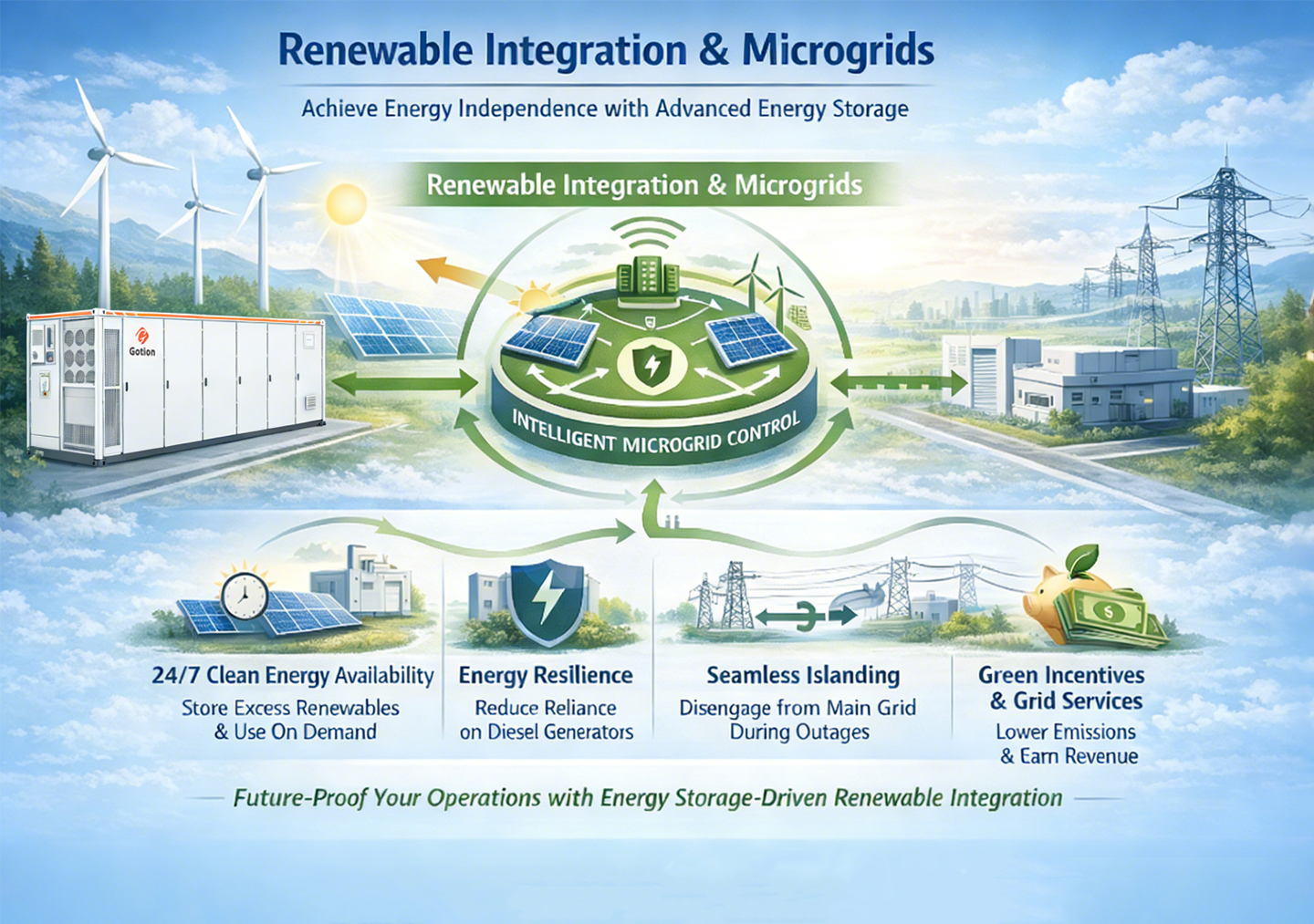 In modern energy storage projects, renewable integration and microgrids are transformative functions driving energy independence and sustainability. Energy storage systems act as the backbone of microgrids, seamlessly balancing intermittent solar and wind generation with stable power output. By storing excess renewable energy during peak production and discharging when generation drops, energy storage ensures 24/7 clean energy availability and reduces reliance on diesel generators. This enhances energy resilience, especially for remote or mission-critical facilities. Furthermore, energy storage enables seamless islandingβallowing microgrids to disconnect from the main grid during outages while maintaining power supply. For C&I users, this means lower carbon footprints, improved power quality, and eligibility for green incentives. Integrating energy storage with renewables also unlocks participation in frequency regulation and grid services markets. Future-proof your operations with energy storage-driven renewable integration and intelligent microgrid control.